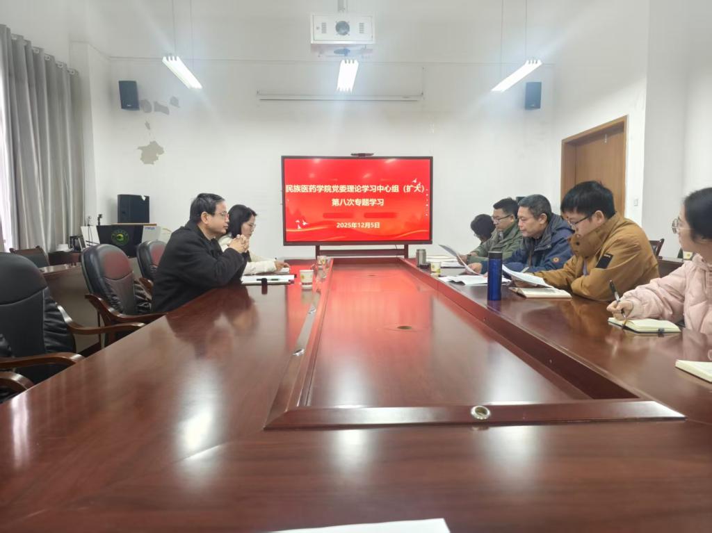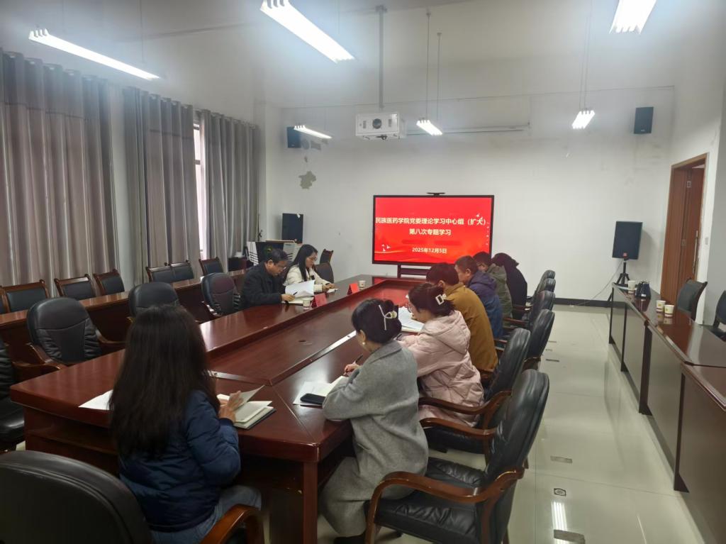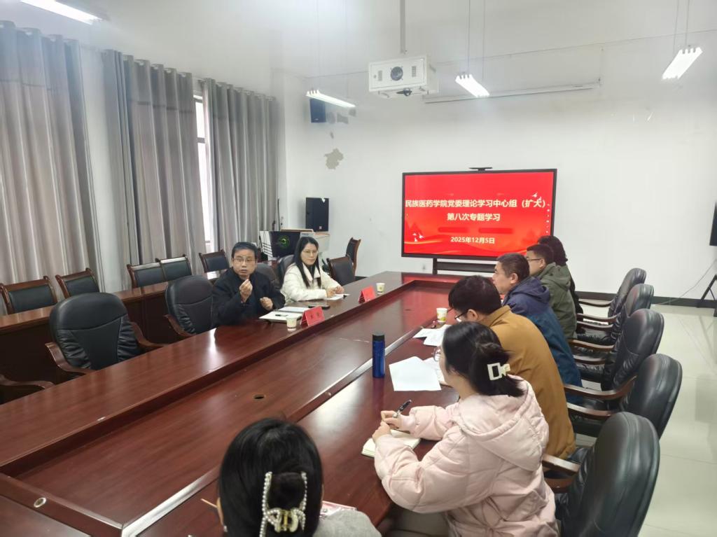 12月05日,贵州民族大学民族医药学院党委理论学习中心组2025年第八次集中学习研讨会在民族医药学院B208会议室召开。院党委书记梁毅主持会议。院党委理论学习中心组成员周培富、姚秋萍、杨盛江、成琳作研讨发言。化学工程学院党委书记王俊、党委办公室主任陈丽娟列席旁听。我院教工党支部书记张艳、研究生党支部书记何娇、本科生党支部书记刘林杰列席。